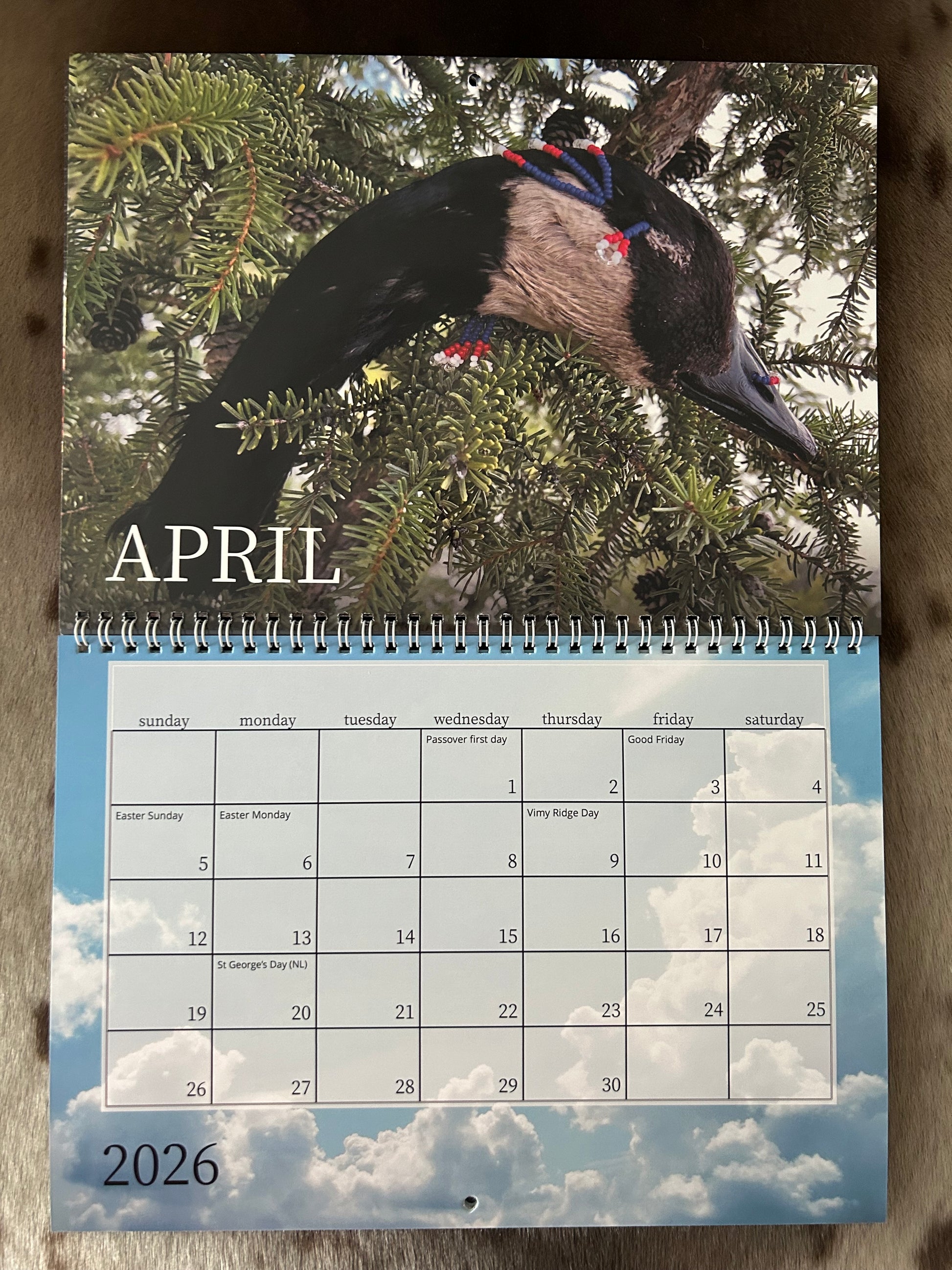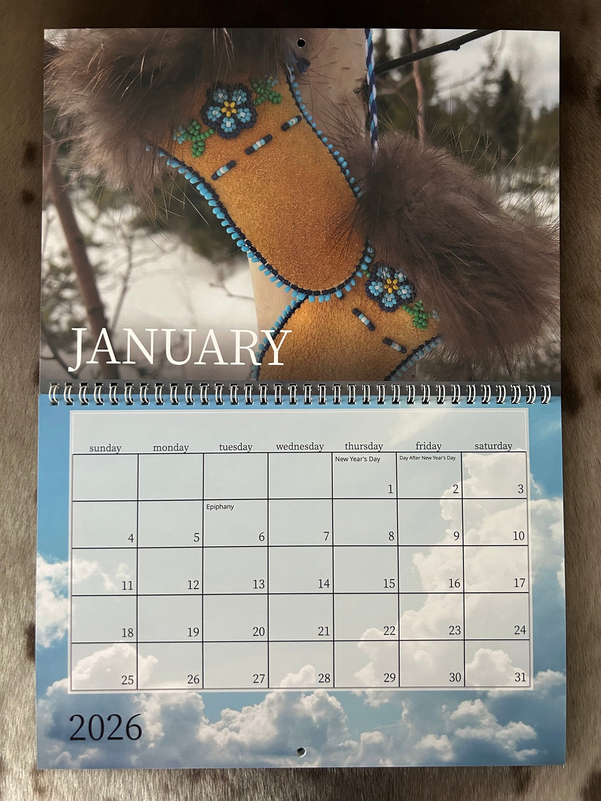 Classic calendar with middle binding (17" x 11"). Paper stock: premium glossy. Photos & crafts by Paula Menarick, Fast Cloud Inspirations.